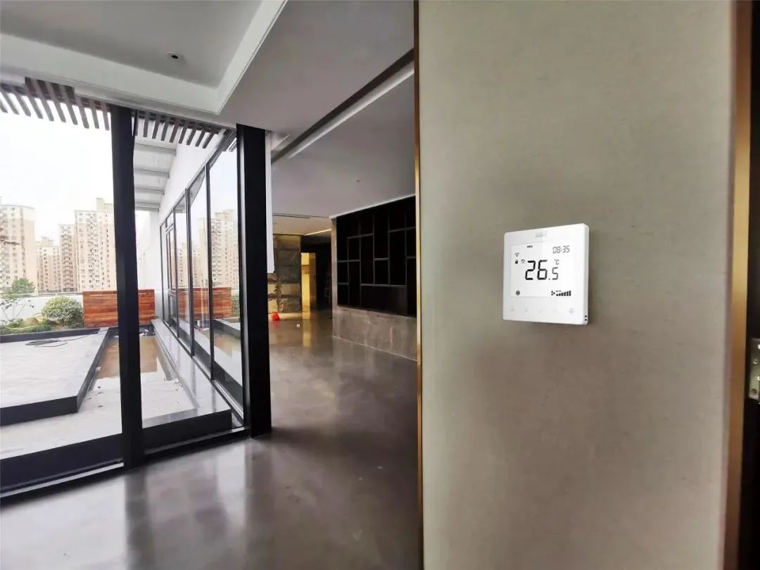泰州金通·桃李園為了打造低碳節(jié)能型高端住宅小區(qū),在了解江蘇海林及其在國內(nèi)樓宇自控行業(yè)中的地位后,選擇并采用海林HA208溫控器、BV03電動球閥、TH39手動分集水器,分戶采暖智能控溫系統(tǒng)。手動分集水器根據(jù)管道介質(zhì)流量可自行調(diào)節(jié)閥門角度,合理管控室溫等作用;溫控器可有效管理室溫變化,自動根據(jù)室溫調(diào)節(jié)檔位運行,大幅降低能源消耗;電動球閥由溫控器控制,由同步機驅(qū)動,溫控器不斷采樣、處理現(xiàn)場數(shù)據(jù)及發(fā)出控制指令,控制球閥的開啟或關(guān)閉,當(dāng)室溫達(dá)到溫控器設(shè)定值時,溫控器令球閥斷電,使閥門開度處于最佳狀態(tài),從而保證室溫在溫控器的設(shè)定范圍內(nèi),實現(xiàn)室溫的自動控制。