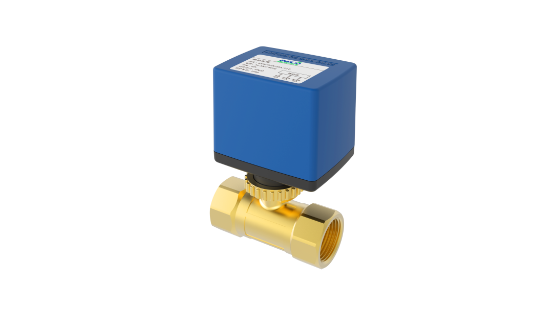控制閥由雙向電機驅(qū)動,電機與溫控器通過公共端、開啟端、閉合端連接。溫控器不斷采樣、處理現(xiàn)場數(shù)據(jù),發(fā)出控制信號,令電動球閥電機運行或停止,控制電動球閥的開閉程度,冷水或熱水進入風(fēng)機盤管,為房間提供冷氣或暖氣;當(dāng)室溫達(dá)到溫控器設(shè)定值時,溫控器令電動球閥斷電,使閥門開度處于最佳狀態(tài),室溫始終保持在溫控器設(shè)定的溫度范圍內(nèi)。