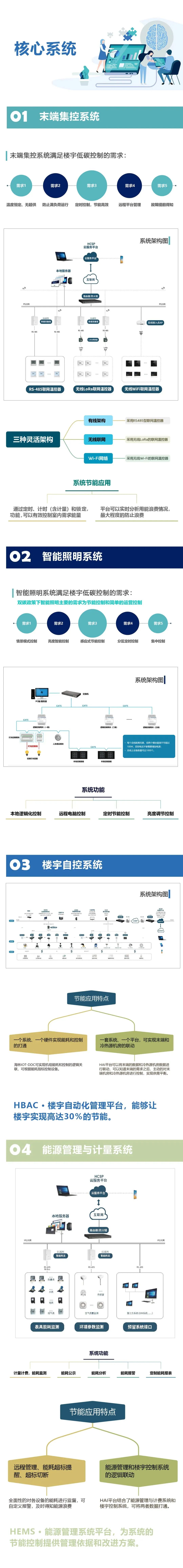 海林自控基于“自動(dòng)控制+AI+IoT”技術(shù)及“樓宇自控+能源管理+微環(huán)境管理”方案,匯聚樓宇自控、能源管理及智能人居三大業(yè)務(wù)及全線產(chǎn)品,建立統(tǒng)一的數(shù)字化能源管理系統(tǒng)平臺(tái),對(duì)建筑內(nèi)的空調(diào)、采暖、新風(fēng)、熱水、燈光、窗簾及溫度、濕度、空氣質(zhì)量和能耗,實(shí)施監(jiān)測(cè)、控制、分析和管理,創(chuàng)建舒適健康和節(jié)能的建筑環(huán)境,同時(shí)實(shí)現(xiàn)節(jié)能降耗,助力建筑樓宇脫碳,促進(jìn)可持續(xù)發(fā)展。