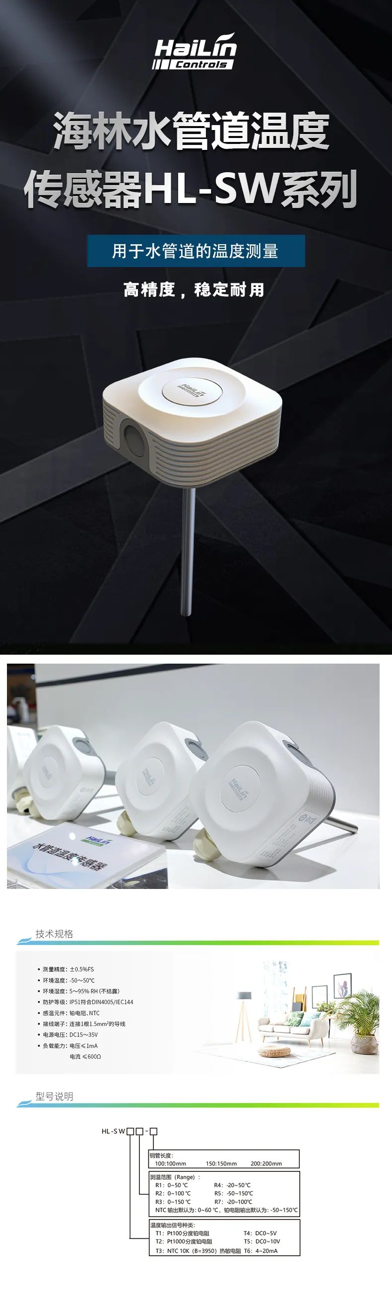 廣泛應(yīng)用于商業(yè)建筑、實驗室、工廠以及國家體育館、國家速滑館、“三場一村”冬奧會項目等大型場館中,主要用于水管道的溫度測量,可提供多種溫度測量范圍,以適應(yīng)管道流體介質(zhì)的不同;可提供NTC、鉑電阻、電壓、電流信號輸出,適應(yīng)各種控制系統(tǒng)的不同要求。當用于水管道測量時,應(yīng)配套水溫套管使用。