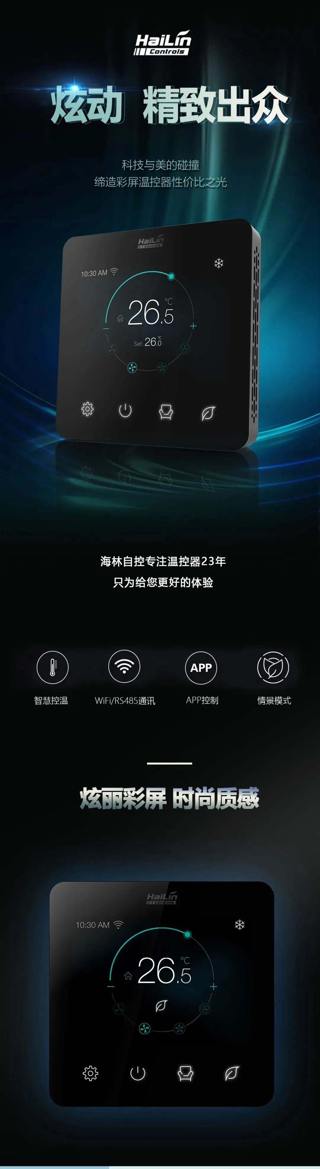 海林炫動(dòng)溫控器適用于中央空調(diào)及供熱采暖的室內(nèi)溫度控制。