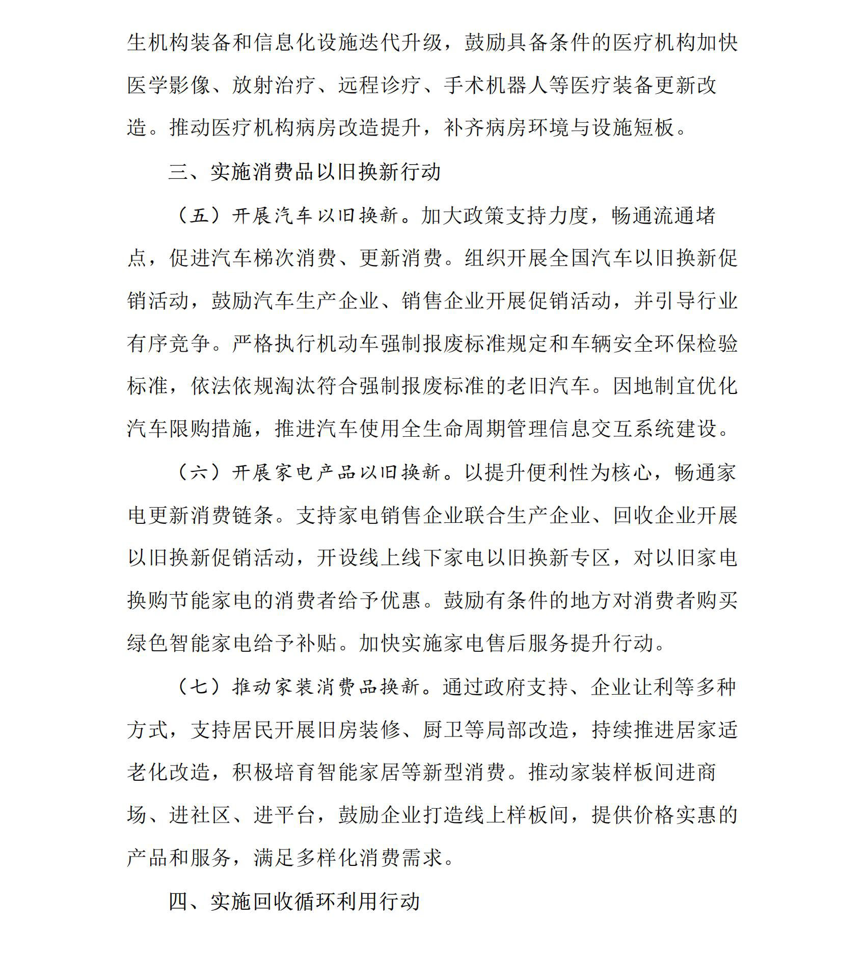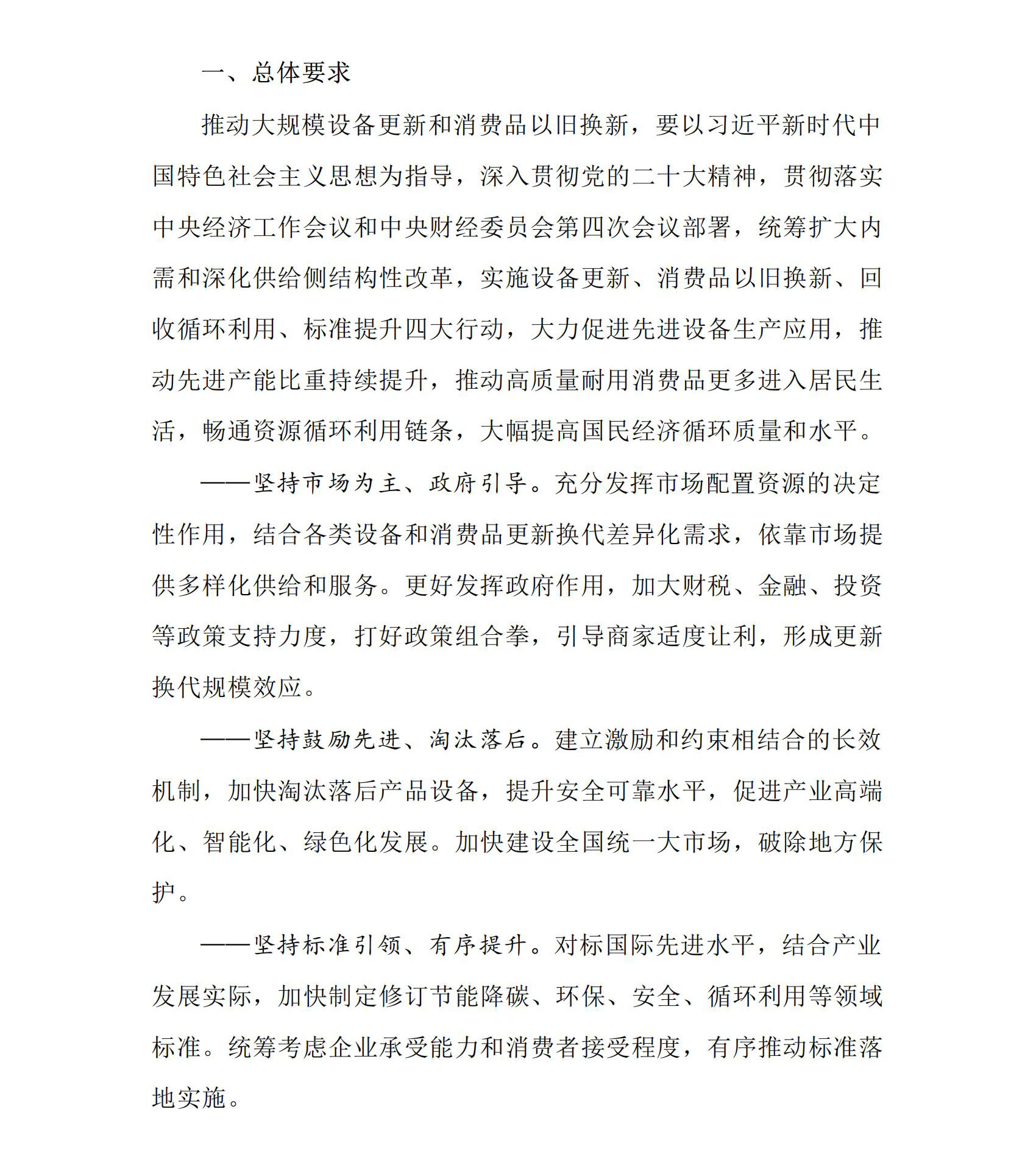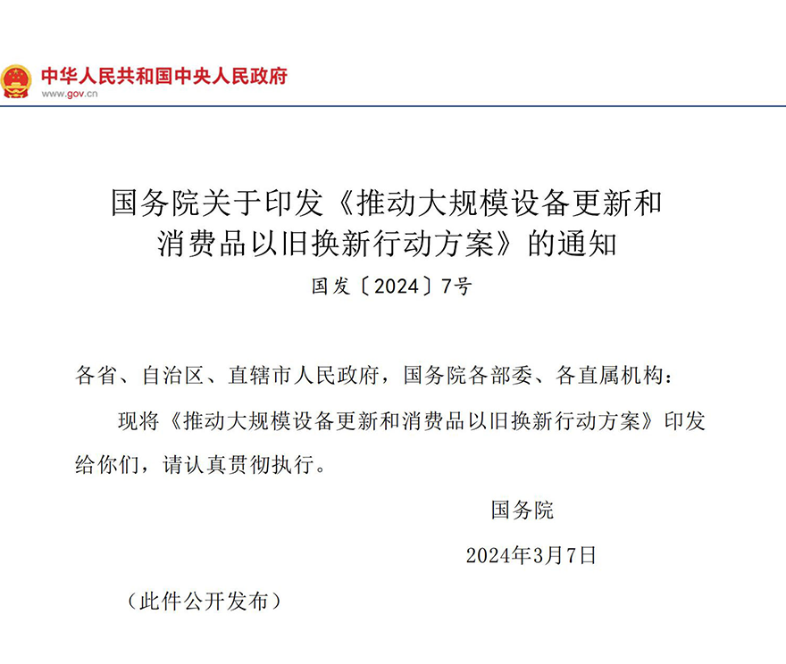 3月13日晚間,國(guó)務(wù)院正式印發(fā)《推動(dòng)大規(guī)模設(shè)備更新和消費(fèi)品以舊換新行動(dòng)方案》。