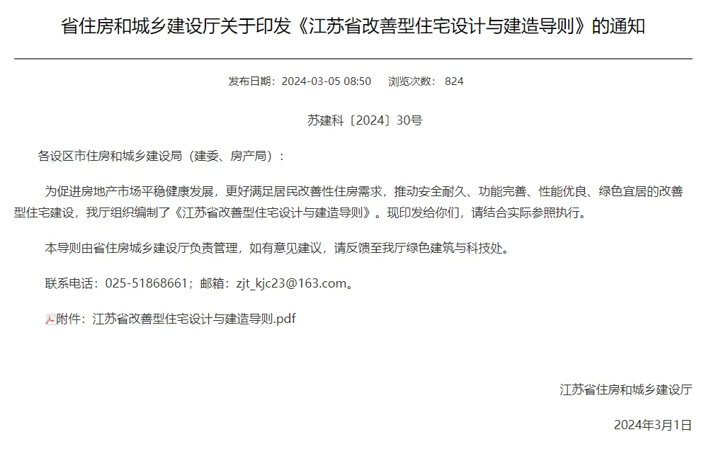 江蘇省出臺,省住房和城鄉(xiāng)建設廳關于印發(fā)《江蘇省改善型住宅設計與建造導則》的通知,推動安全耐久、功能完善、性能優(yōu)良、綠色宜居的改善型住宅建設,品質住宅有大變化!
