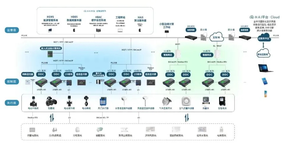 HAI平臺樓宇自控系統(tǒng)具有強大的接口能力,可以實現(xiàn)對住區(qū)冷熱源、空調機組、智能照明等設備設施的自動化管理。海林IoT-DDC 憑借強大的運算能力和豐富的接口(3 個 RS-485)可直接接入多個子系統(tǒng),冷熱源機組控制、能耗狀態(tài)、室內環(huán)境控制均可在一個設備內完成,實現(xiàn)真正的局部區(qū)域本地化實現(xiàn)能源樓控的解決方案。