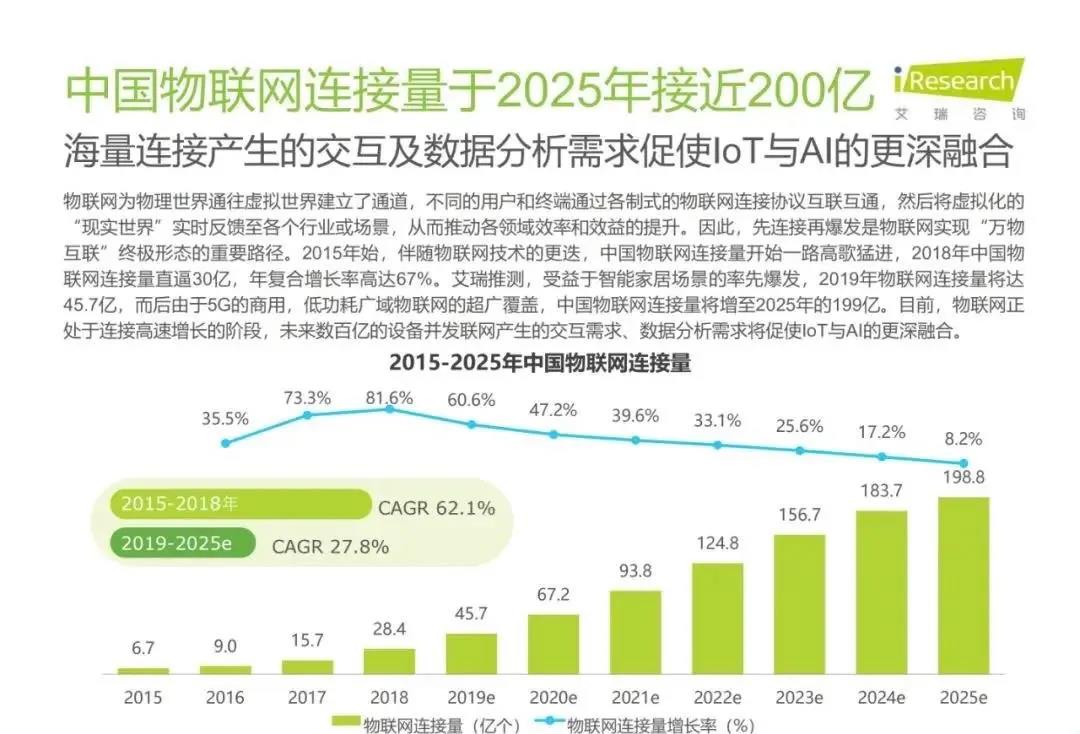 白皮書顯示,預(yù)計2025年我國物聯(lián)網(wǎng)連接數(shù)近200億個,萬物喚醒、海量連接將推動各行各業(yè)走上智能道路。2019年,受益于城市端AIoT業(yè)務(wù)的規(guī)?;涞丶斑吘売嬎愕某醪狡占埃袊鳤IoT市場規(guī)模突破3000億大關(guān)直指4000億量級,由于AIoT在落地過程中需要重構(gòu)傳統(tǒng)產(chǎn)業(yè)價值鏈,未來幾年發(fā)展節(jié)奏較為穩(wěn)定。當(dāng)前AIoT技術(shù)和商業(yè)快速落地,然而,認(rèn)知智能層面的發(fā)展仍然較慢,行業(yè)標(biāo)準(zhǔn)與規(guī)范化不足,大規(guī)模物聯(lián)網(wǎng)設(shè)備的安全問題也有待重視。
