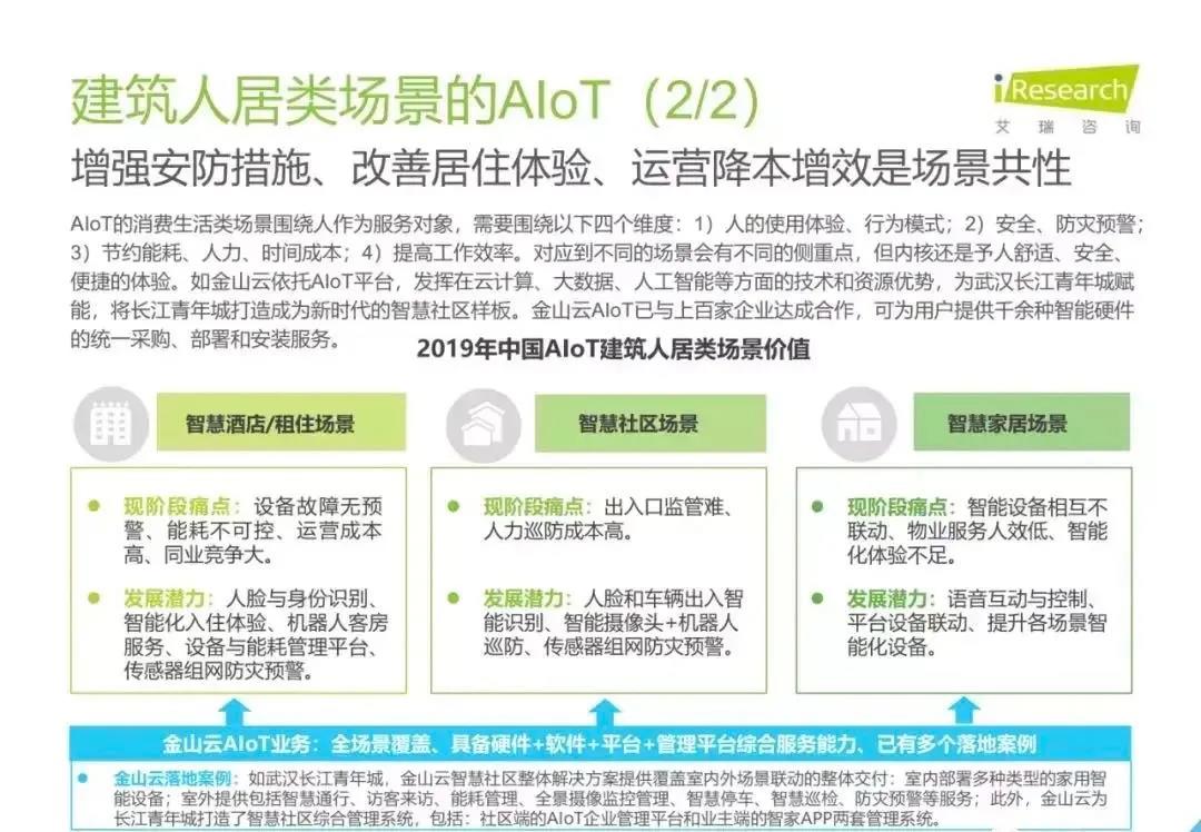 近日,艾瑞咨詢與金山云聯(lián)合發(fā)布《2020年中國智能物聯(lián)網(wǎng)(AIoT)白皮書》。白皮書對未來AIoT的應(yīng)用愿景進(jìn)行了描繪,對行業(yè)應(yīng)用場景及發(fā)展空間進(jìn)行了分析,旨在將向市場提供更多的參考依據(jù)。