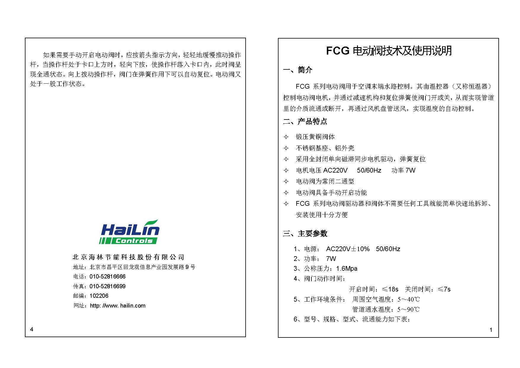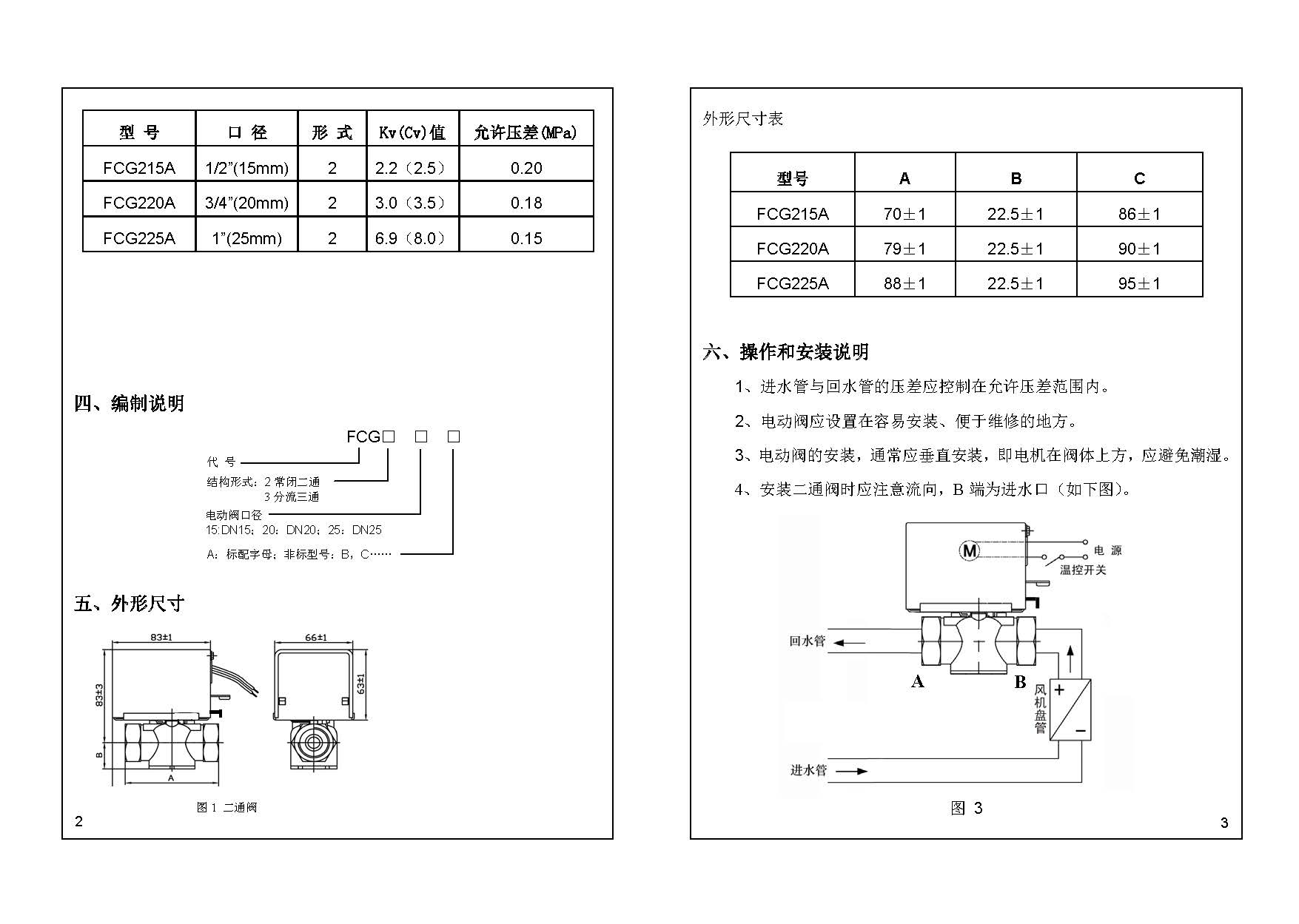 FCG 系列電動閥用于空調(diào)末端水路控制。其由溫控器(又稱恒溫器)控制電動閥電機(jī),并通過減速機(jī)構(gòu)和復(fù)位彈簧使閥門開或關(guān),從而實現(xiàn)管道里的介質(zhì)流通或斷開,再通過風(fēng)機(jī)盤管送風(fēng),實現(xiàn)溫度的自動控制。