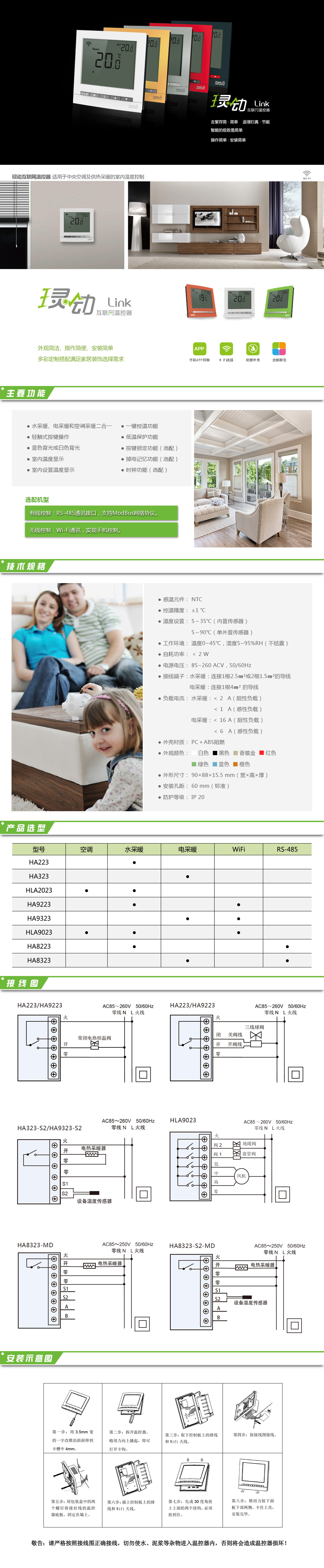 ?動(dòng)采暖溫控器包括“本地控制、有線控制、無線控制”三種類型,適用于家庭地板采暖系統(tǒng)或散熱器采暖系統(tǒng)的室內(nèi)溫度控制。一體化弧形表面設(shè)計(jì)簡(jiǎn)潔流暢,多彩定制搭配滿足家居裝飾選擇需求,進(jìn)口材質(zhì)安全耐候性強(qiáng),網(wǎng)絡(luò)連接安裝簡(jiǎn)單操作便捷,感知靈敏控制精準(zhǔn)。
