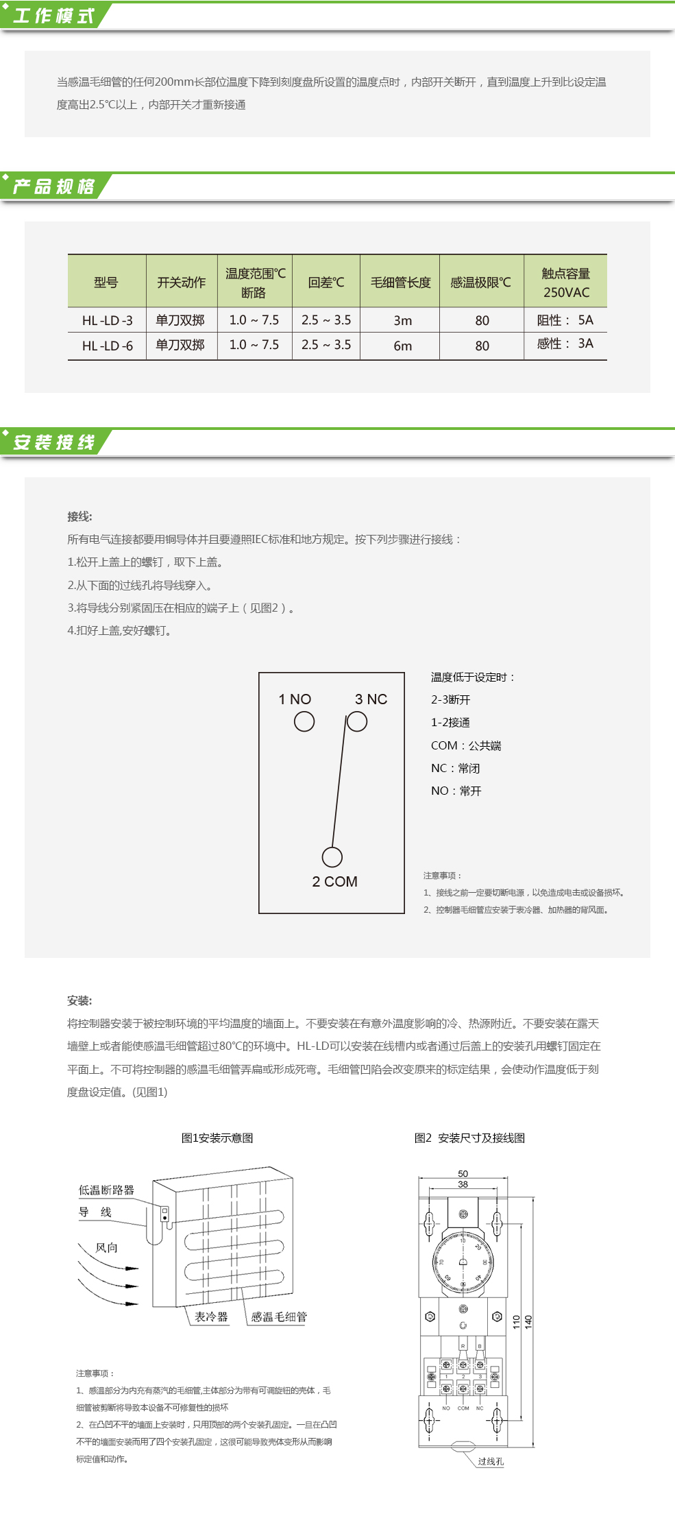 HL-LD低溫?cái)嗦房刂破鞴ぷ饔趩蔚峨p擲模式。典型應(yīng)用包括:低溫條件下用于保護(hù)熱交換器、表冷器以及液體工作管路為避免過冷或結(jié)冰。當(dāng)感溫毛細(xì)管的任何200mm長(zhǎng)部位溫度下降到刻度盤所設(shè)置的溫度點(diǎn)時(shí),內(nèi)部開關(guān)斷開,直到溫度上升到比設(shè)定溫度高出2.5℃以上,內(nèi)部開關(guān)才重新接通。
